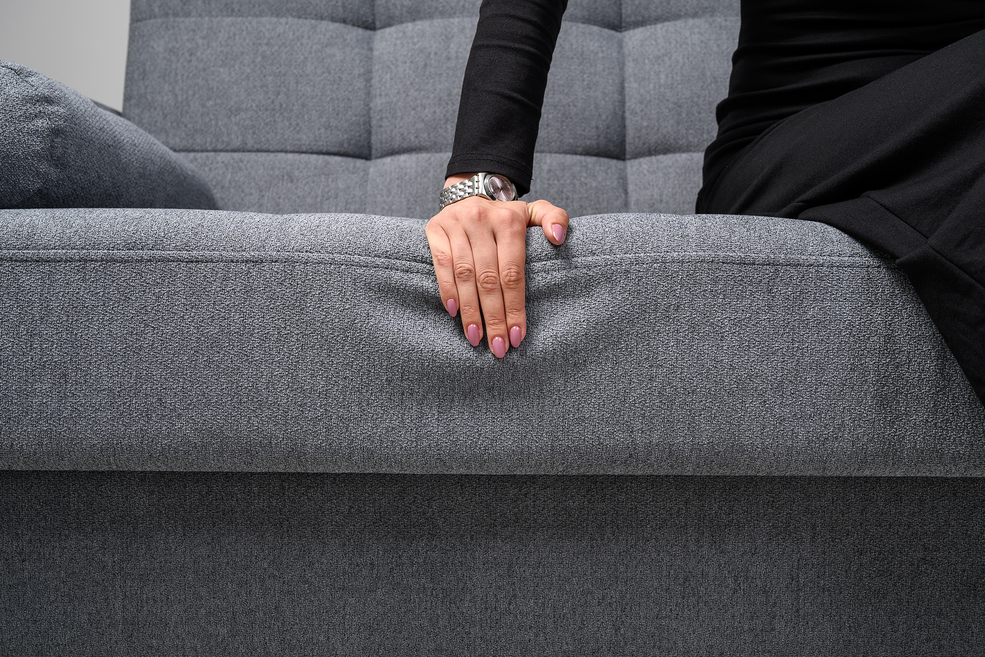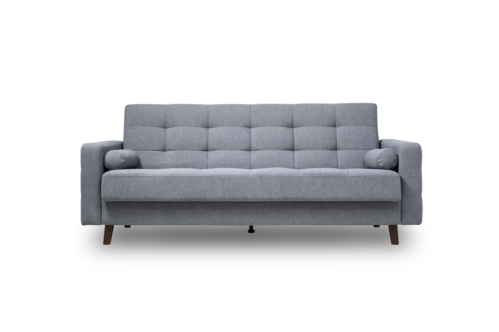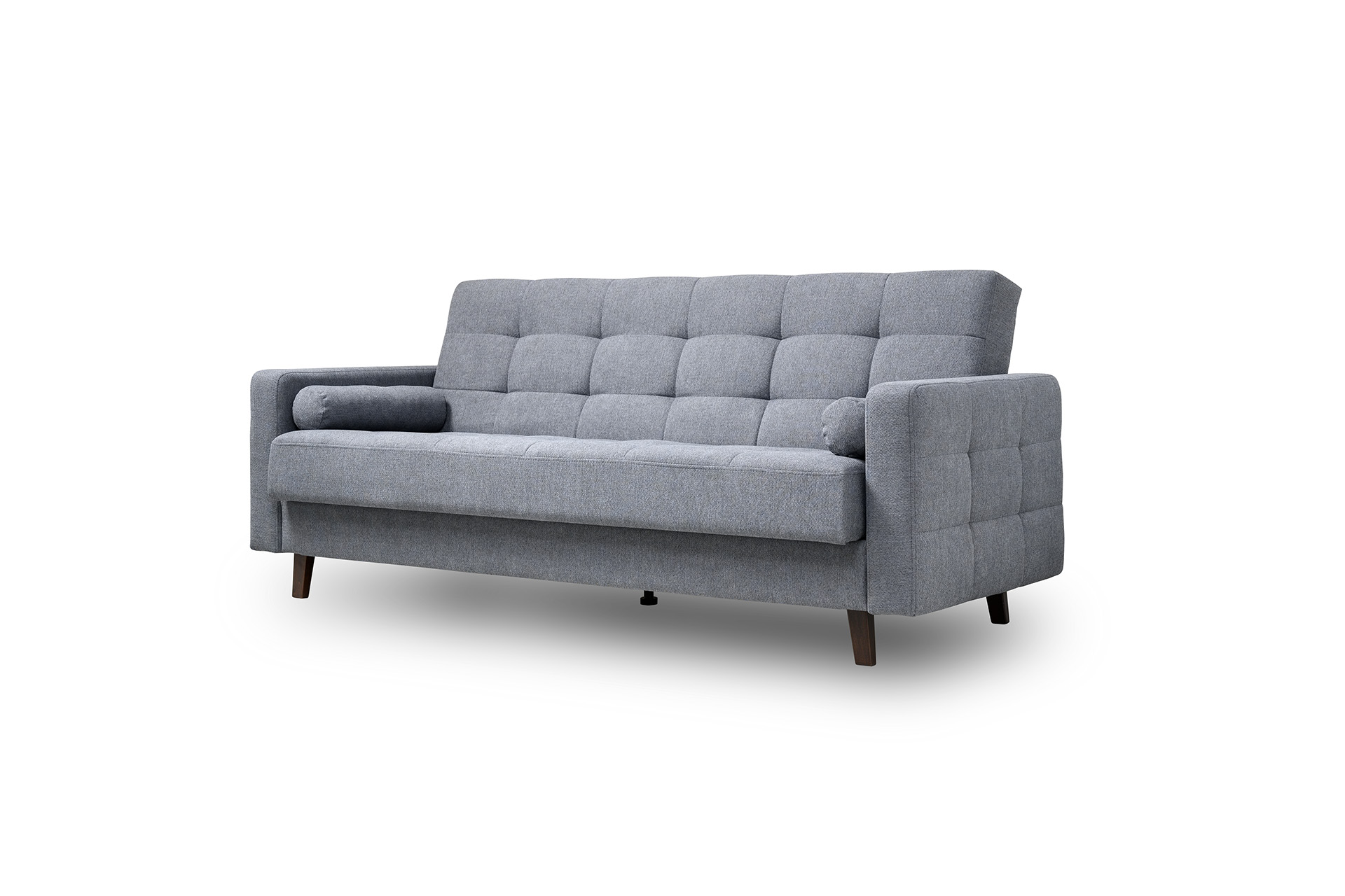 Прямоугольная стежка по спинке, посадочному месту и подлокотниках, круглые подушки-валики