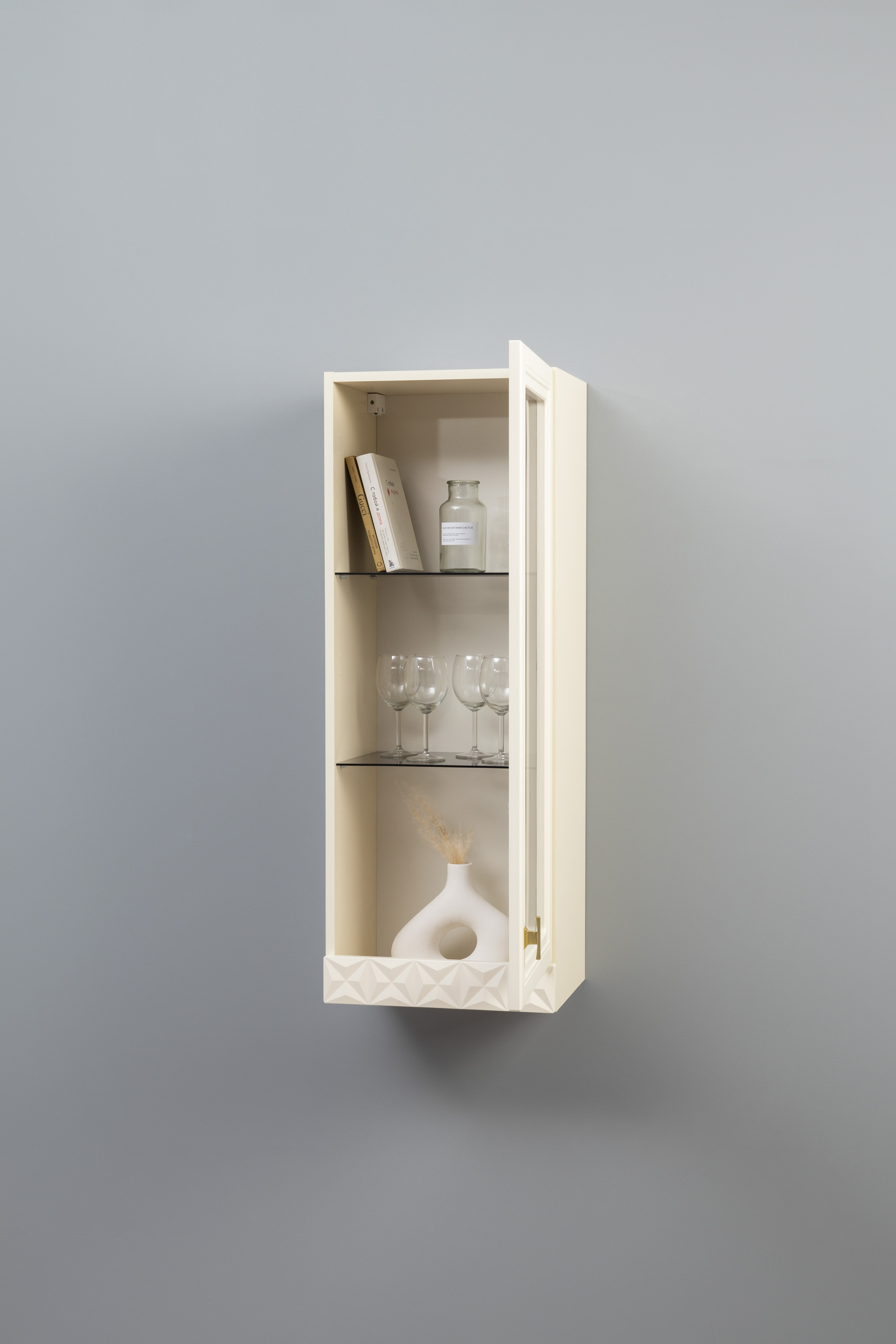 Шкаф навесной Марион 16.334 слоновая кость С341 PE, слоновая кость 6898 ПВХ (собирается на любую сторону)