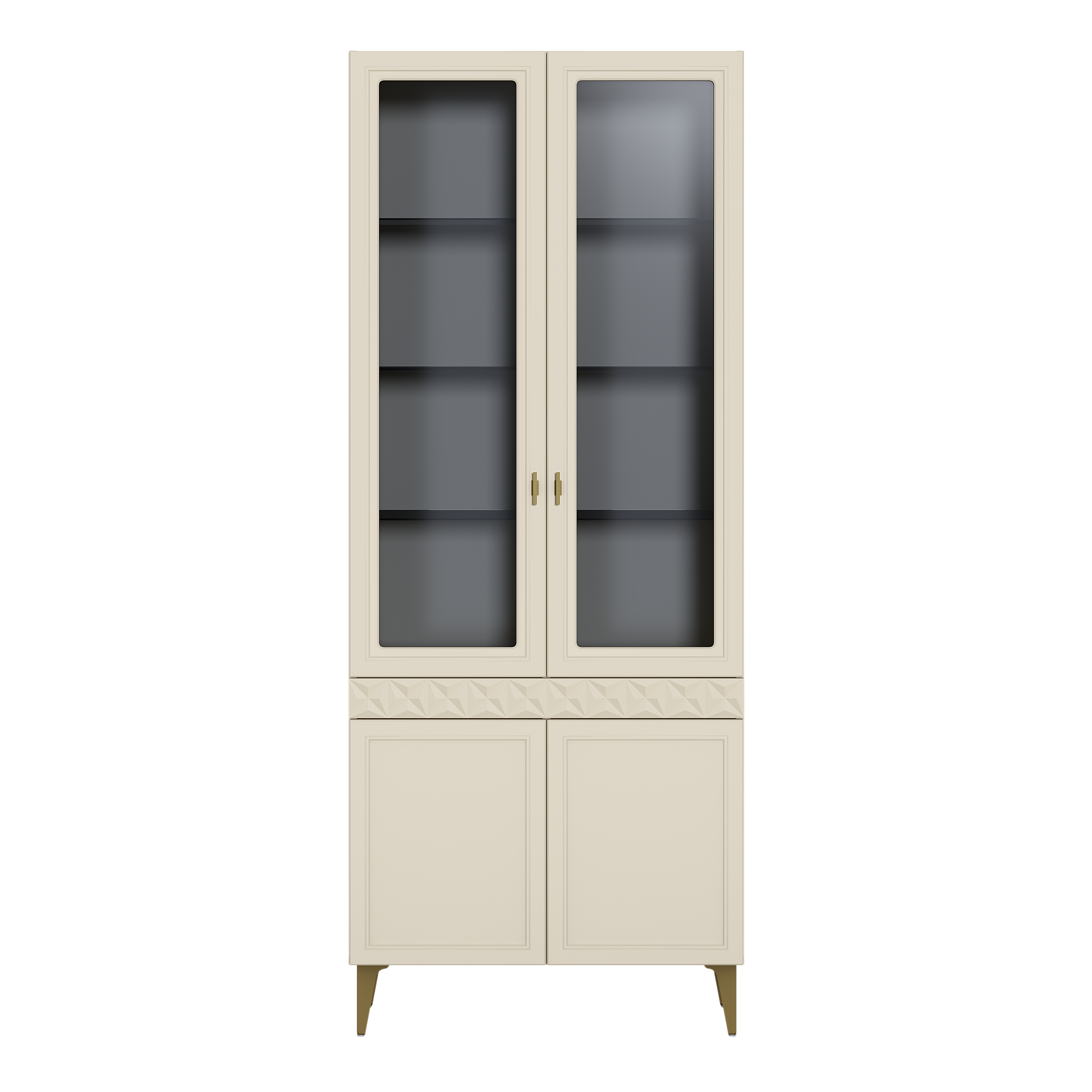 Шкаф-витрина Марион 16.397.01 слоновая кость С341 PE, слоновая кость 6898 ПВХ (собирается на любую сторону)