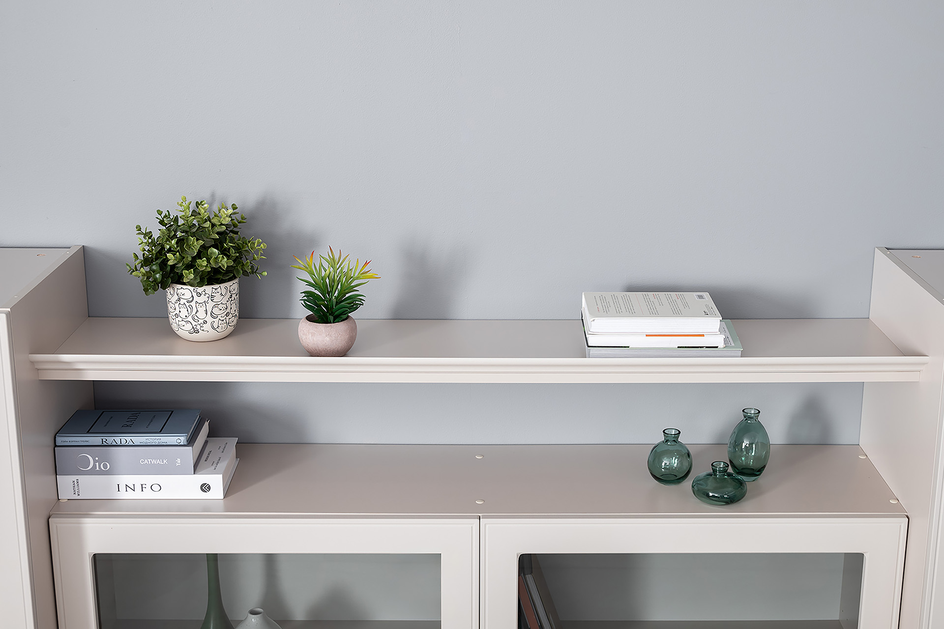 Гостиная Ричфорд композиция 1 с карнизами, кашемир 5981 BS, моно керамика D166-2 ПВХ, белый PE шагрень (собирается на любую сторону)