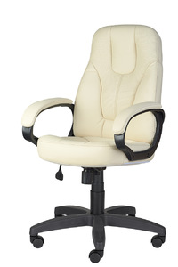 Кресло на колесах Канц ультра кожзам бежевый, крестовина пластик, подлокотники с мягкими накладками, механизм качания
