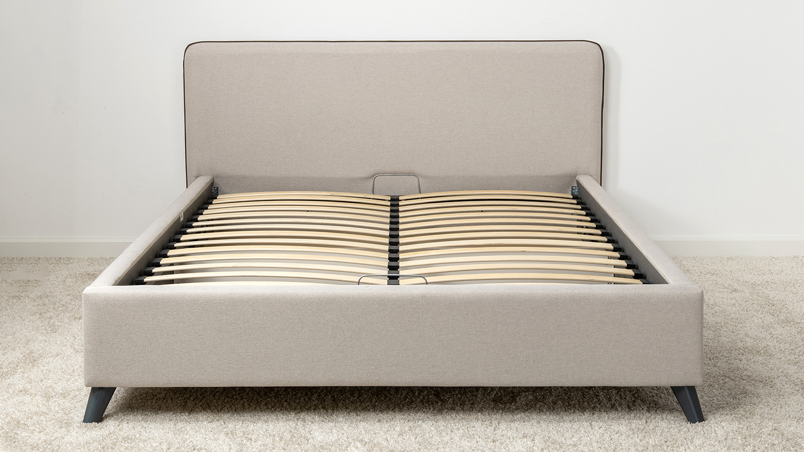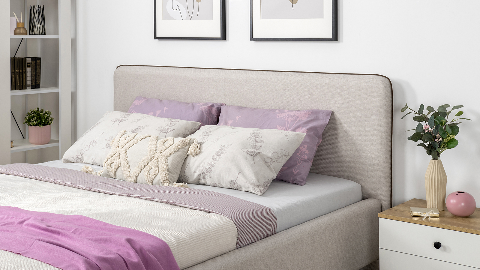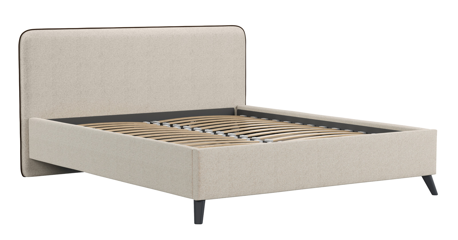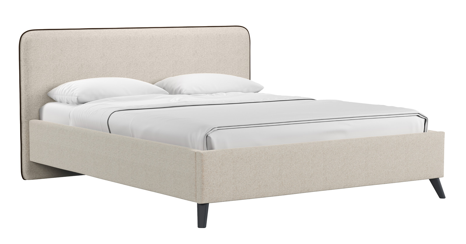 Cкругленный торец изголовья оформлен контрастным кантом.