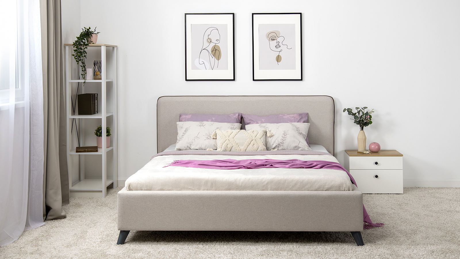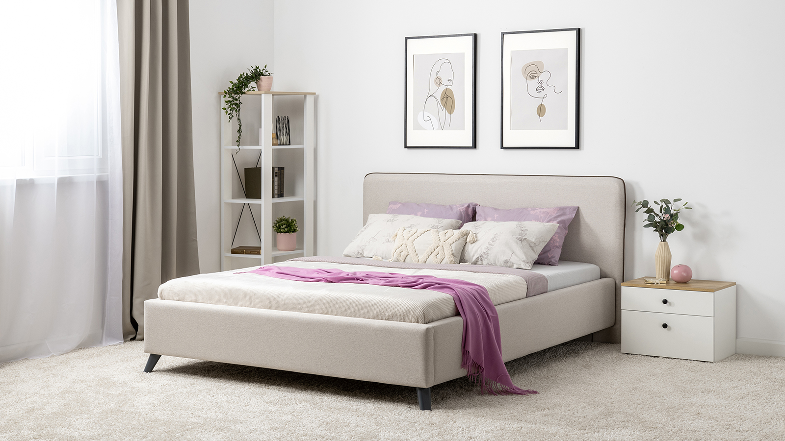 Лаконичный дизайн, гладкая и приятная на ощупь рогожка, широкий выбор пастельных оттенков, высокие опоры — модная кровать МИА порадует сторонников скандинавского стиля.