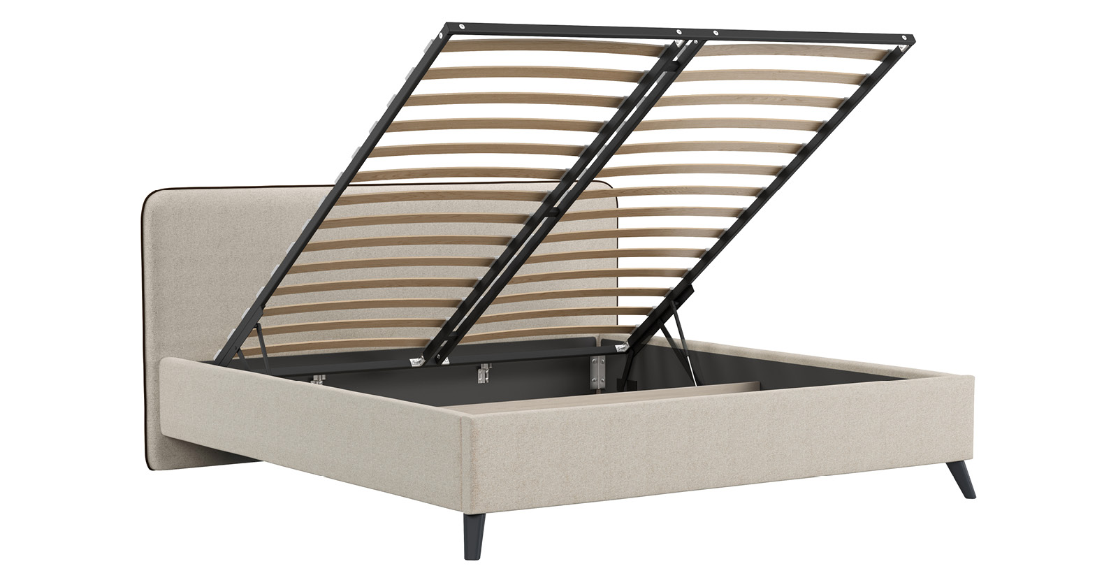 Кровать Миа 160 рогожка светло-бежевый, кант желтовато-коричневый с ортопедическим основанием и подъемным механизмом