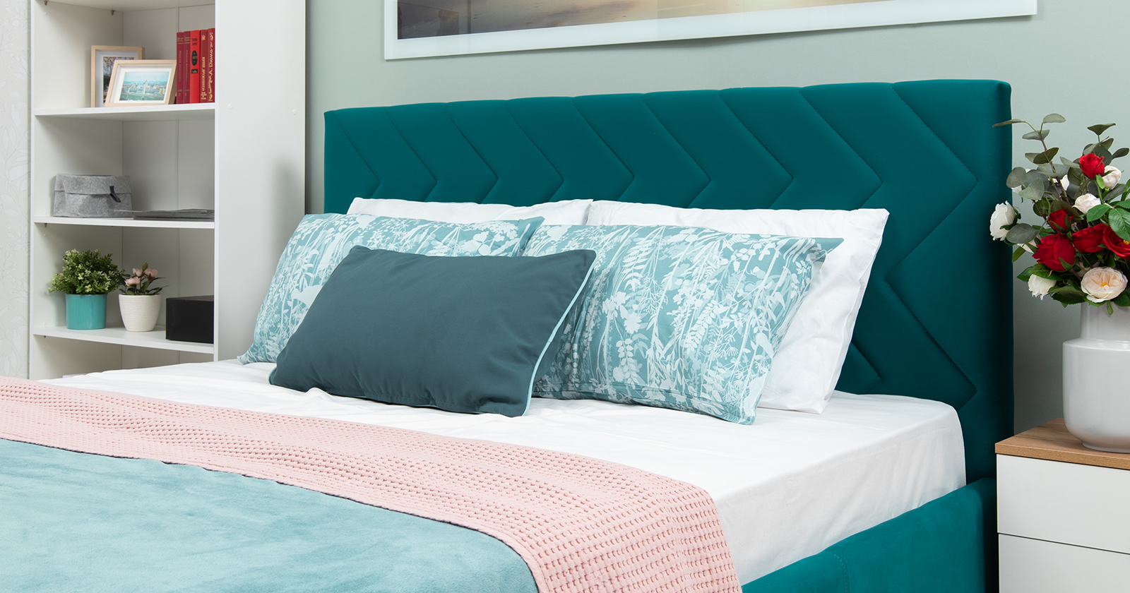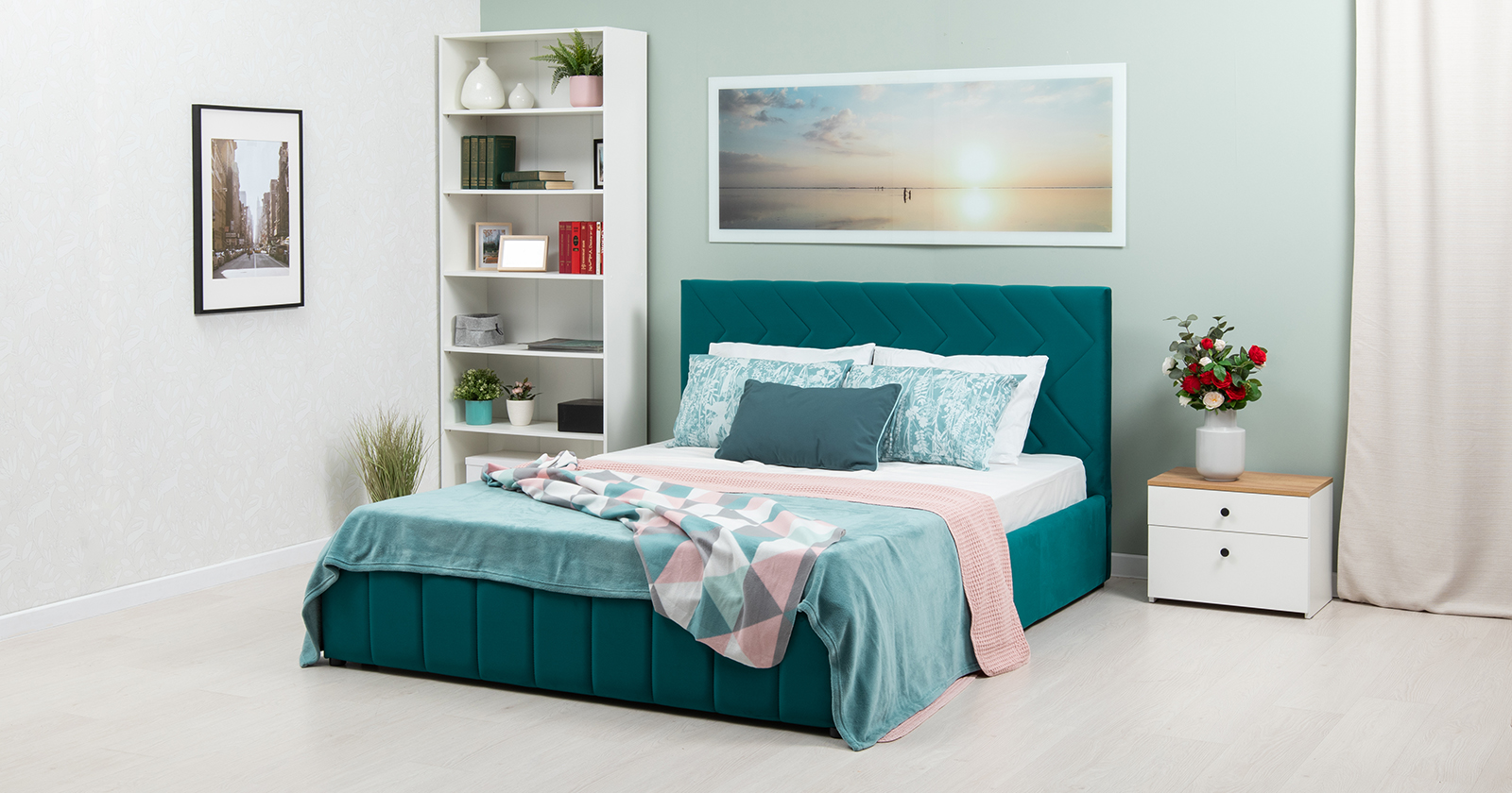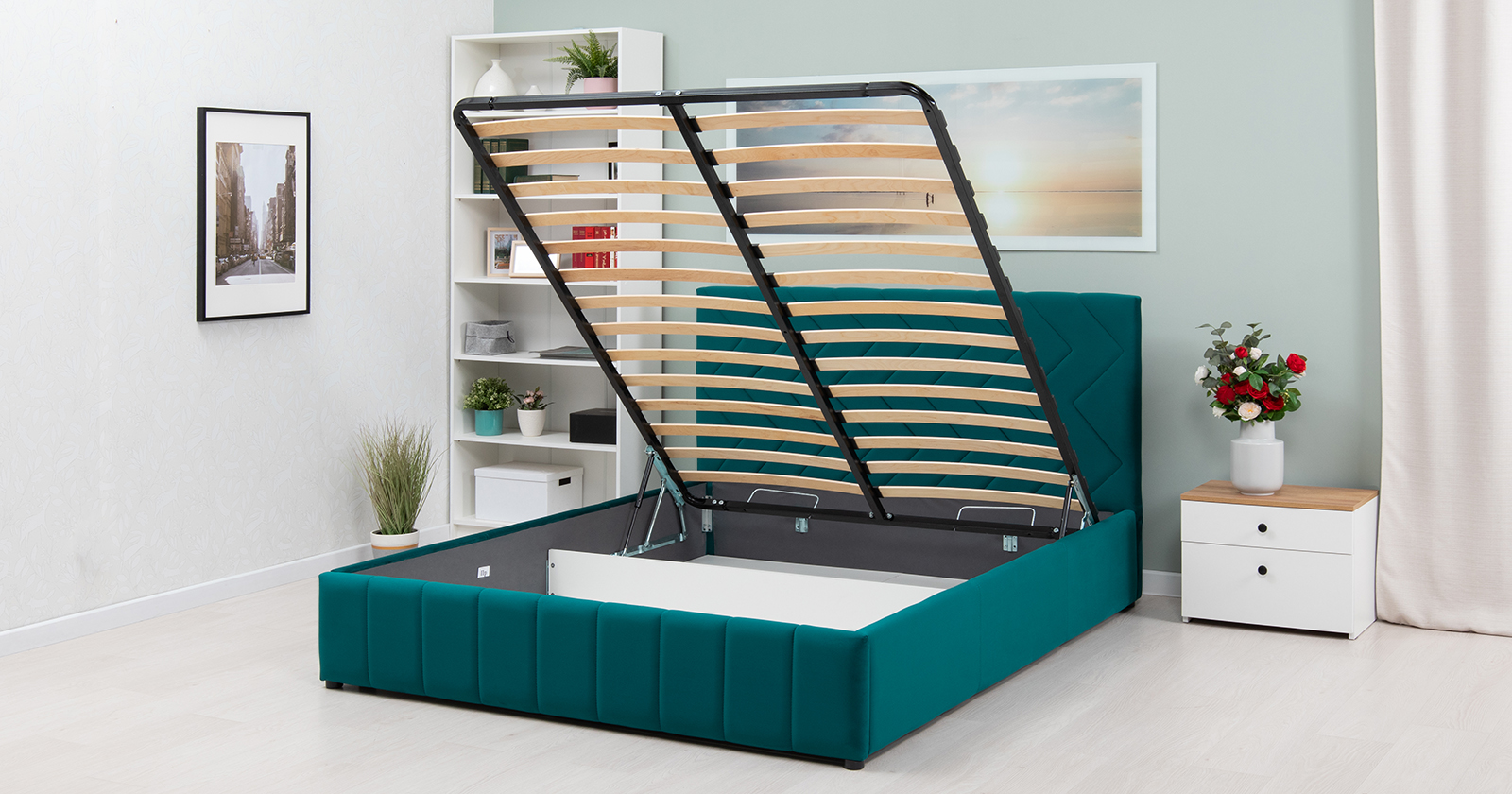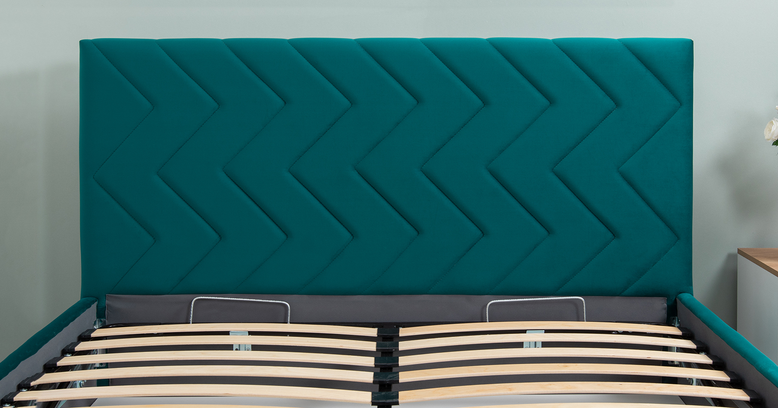 Кровать Милана 160 велюр сине-зеленый с ортопедическим основанием и подъемным механизмом