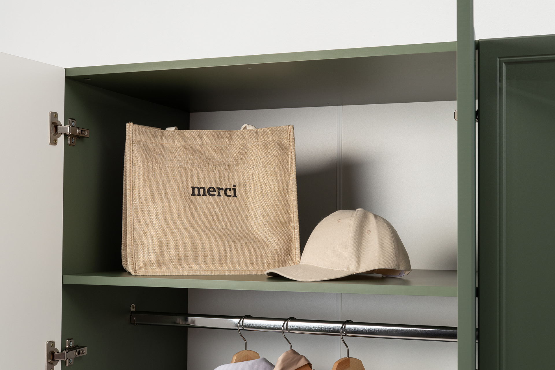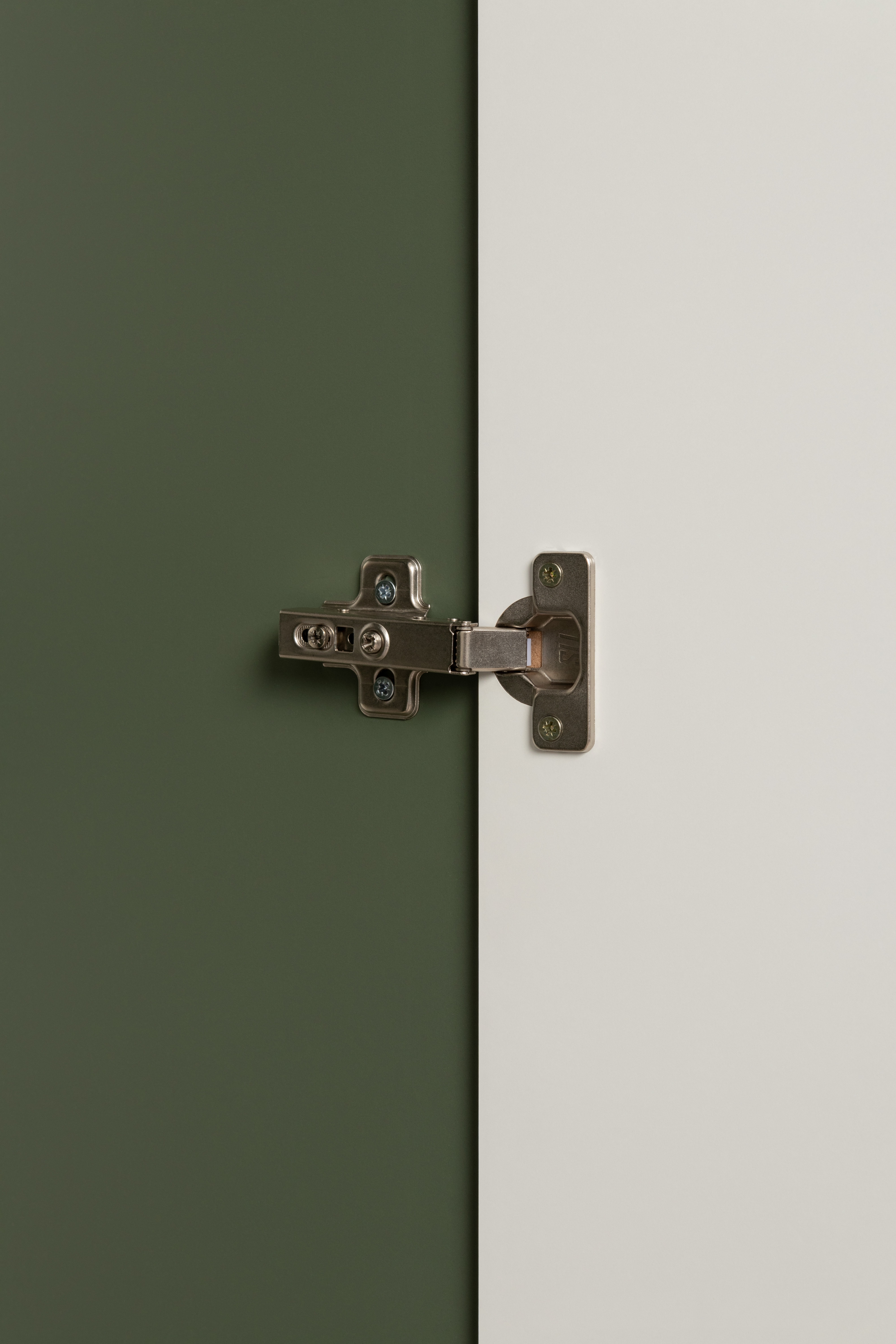 Изящные линии, глубокая фрезеровка фасадов из МДФ и благородные оттенки. Утончённая «Слоновая кость» и изысканная «Олива Шагрень» с глубоким зелёным тоном — создают атмосферу уюта, тепла и благородства. Металлические ручки и опоры золотого цвета придают мебели утончённый блеск, а петли и направляющие с доводчиками обеспечивают плавное и бесшумное закрытие фасадов.