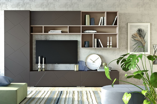 Тумба под ТВ в гостиную Петра 13.281 белый PE шагрень, милк софт ПВХ, бетон чикаго беж ПВХ
